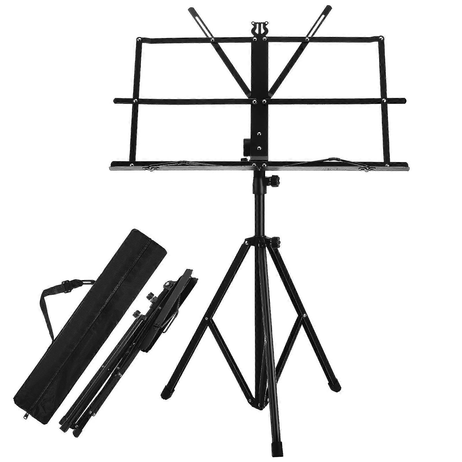 Introducing our Foldable Music Stand, the for musicians. This portable music stand is designed with convenience, featuring a foldable and adjustable design that allows you to easily up and adjust the height and angle according to your preference. Features -Color:Black -Material:Iron, rubber, PP - Size: 65.00X46.70X33.00cm/25.55X18.35X12.97in -Height adjustment: 650-1350mm - Foldable design: The music stand can be folded and adjusted in height, providing a portable solution for music practice and performance. - Sturdy material: Made with iron, rubber, and PP material, the portable music stand is sturdy and strong, ensuring use. - Good load-bearing capacity: The music stand can hold various music sheets or textbooks, providing a secure and stable support. - Adjustable design: The music stand can be adjusted in height and angle, providing a comfortable and convenient viewing experience. - Versatile use: The music stand is suitable for placing various music sheets, making it suitable for music practice, teaching and performance. Package list: 1 x music stand
