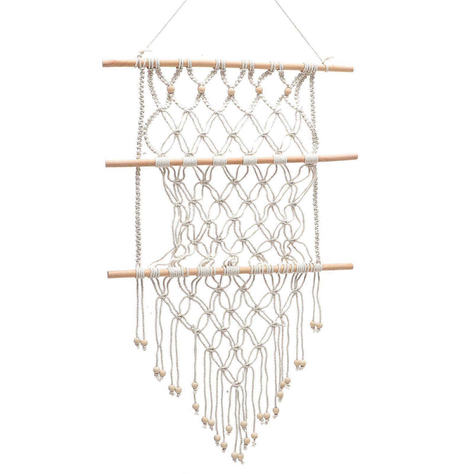 Magazine Holder Basket Wall Organizer for Office Home Use Beige Cotton Rope Wood File Storage 1Pcs