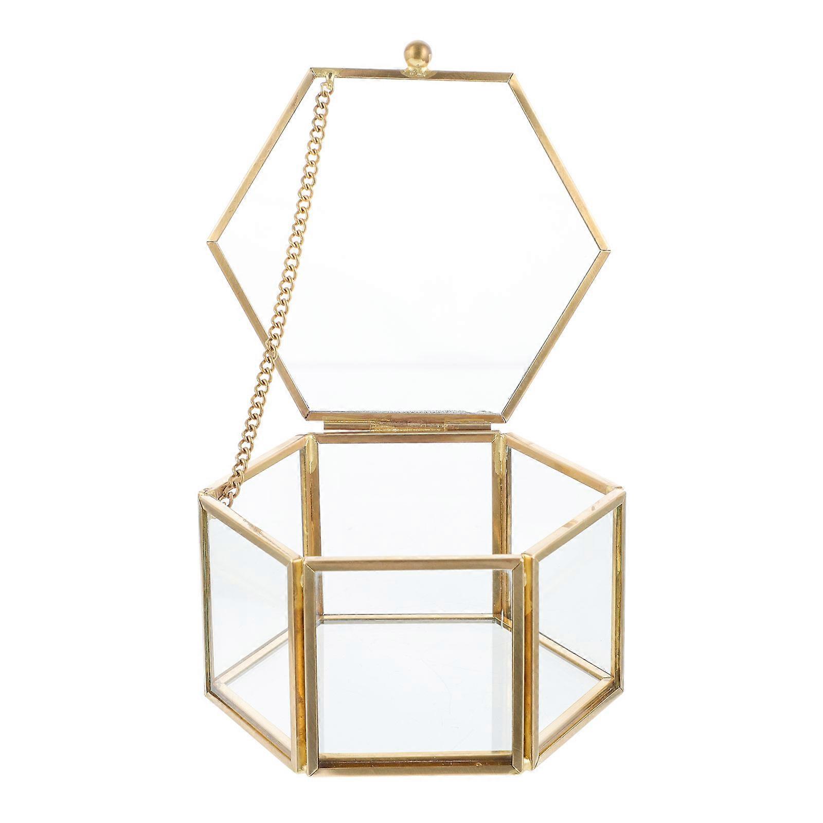 Hexagonal Jewelry Holder Glass Brass for Anniversaries Golden with 1Pcs