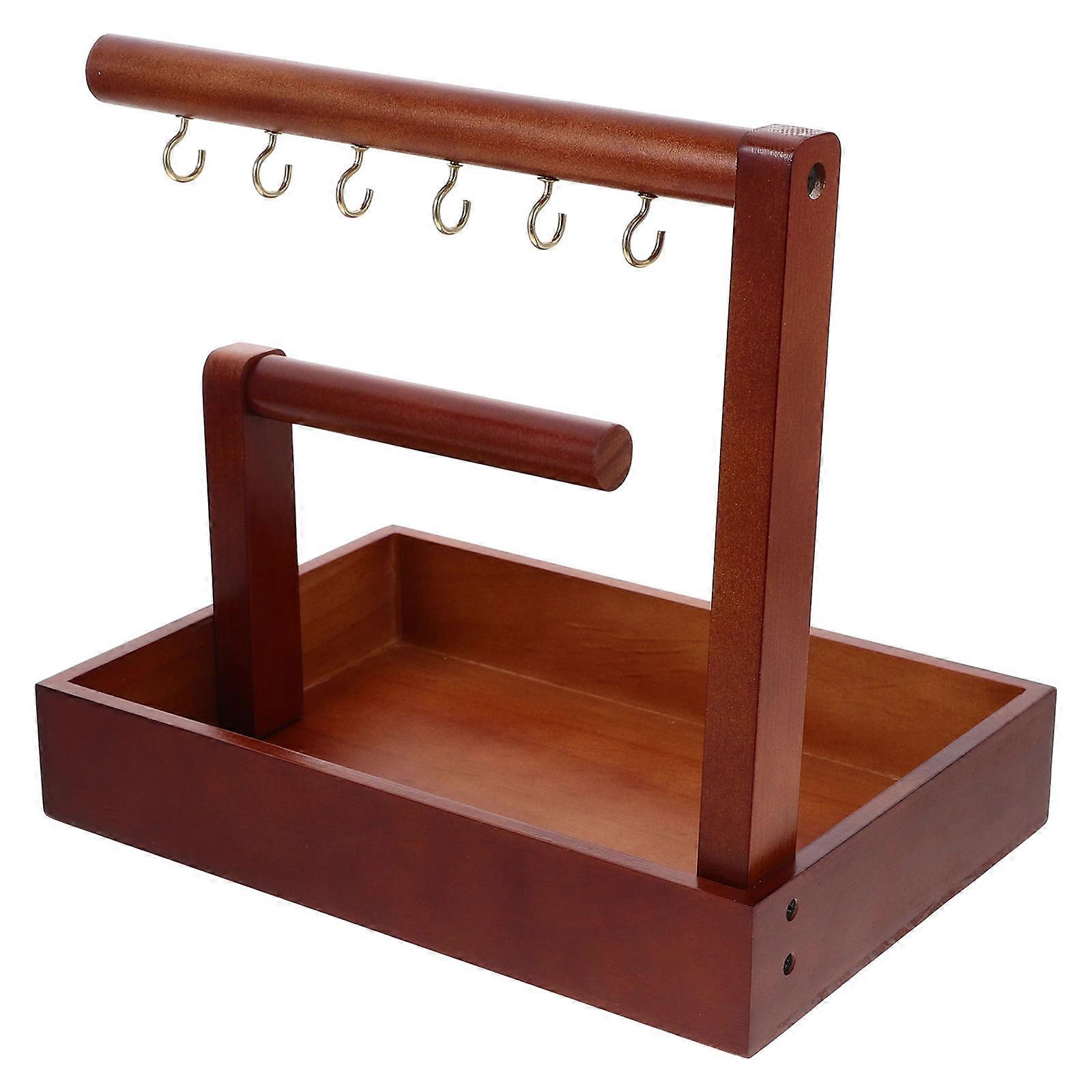 Jewelry Stand Bracelet Storage Rack Wooden Organizer Women Homeowners Six Hook Design Easy Access 10.2×9.6×7.1in 1Pcs