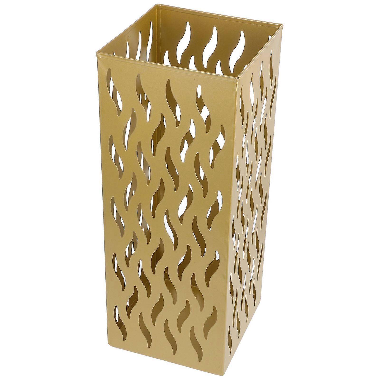 Golden Umbrella Stand Square Metal Storage Organizer Entryway .90X16.20X16.20CM Antislip Base 1Set