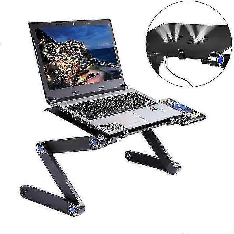 Portable 360 Degree Adjustable Foldable Aluminium Alloy Desk Stand with Double CPU Fans & Mouse Pad for Laptop / Notebook(Black)