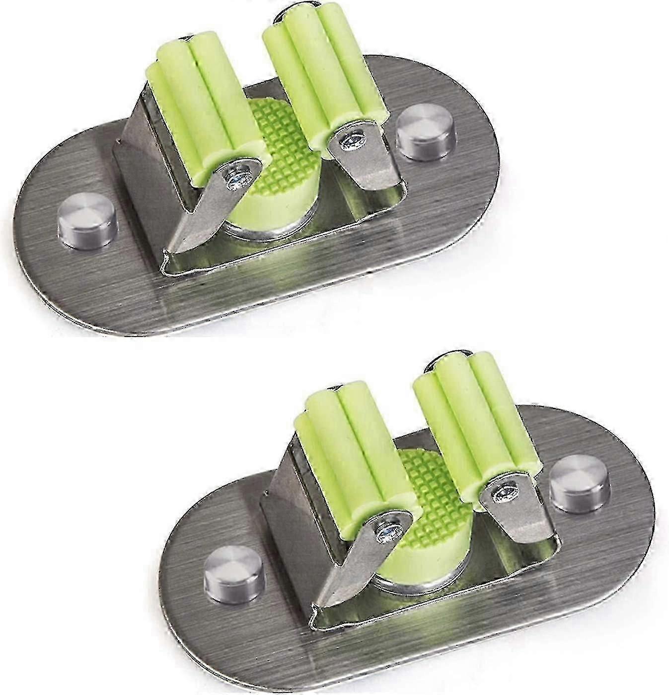 Multi-function Wall Mounted Broom Holder, Screw Drilling And Self Adhesive Mop Broom Holder, 304 Brushed Stainless Steel, For Hanging Tools, 2 Pieces