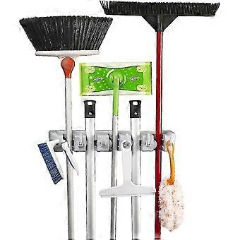 Wall-mounted Broom Holder With 5 Slots And 6 Multi-task Hooks