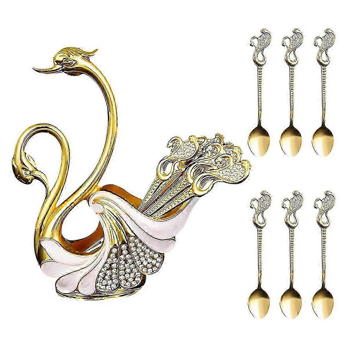 Decorative Metal Swan Base Coffee Spoon Holder with 6pcs Spoons Set, Coffee Tea Spoon Set with Hold