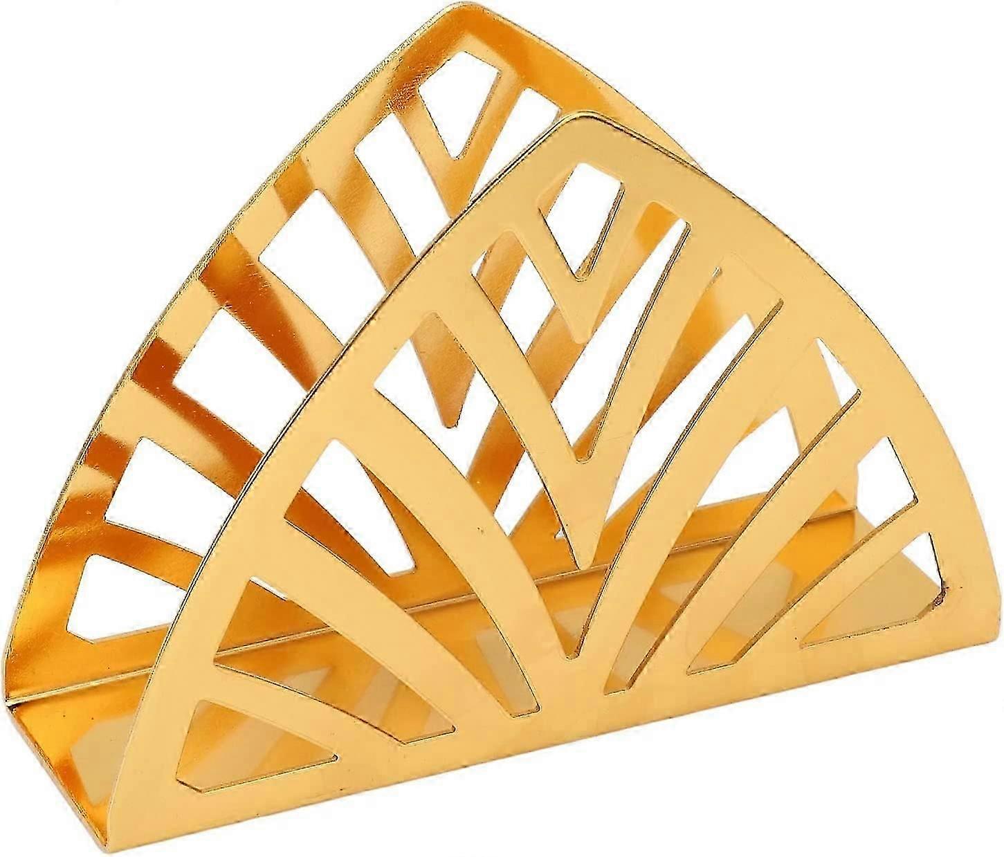 Gold Napkin Holder,Hand Plated Hollow Out Triangle Shape Vertical Type Stainless Steel Napkin Holder with Nonslip Bottom for Kitchen Countertops Dinin