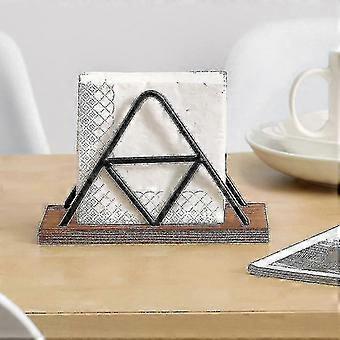 حامل منديل طاولة طعام - حامل منديل معدني وخشبي أسود للمطبخ وغرفة الطعام وغرفة الطعام - جيد