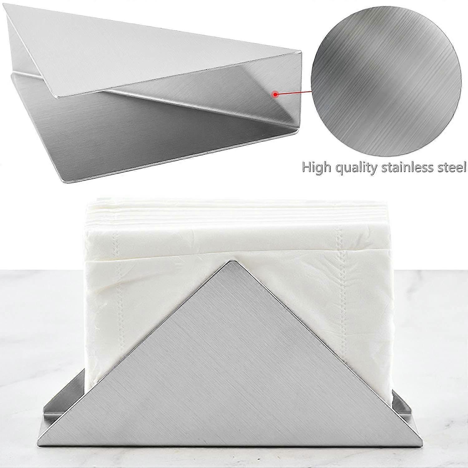 Stainless Steel Triangular Napkin Holder - Kitchen Dining Picnic Table Organizer (Silver)