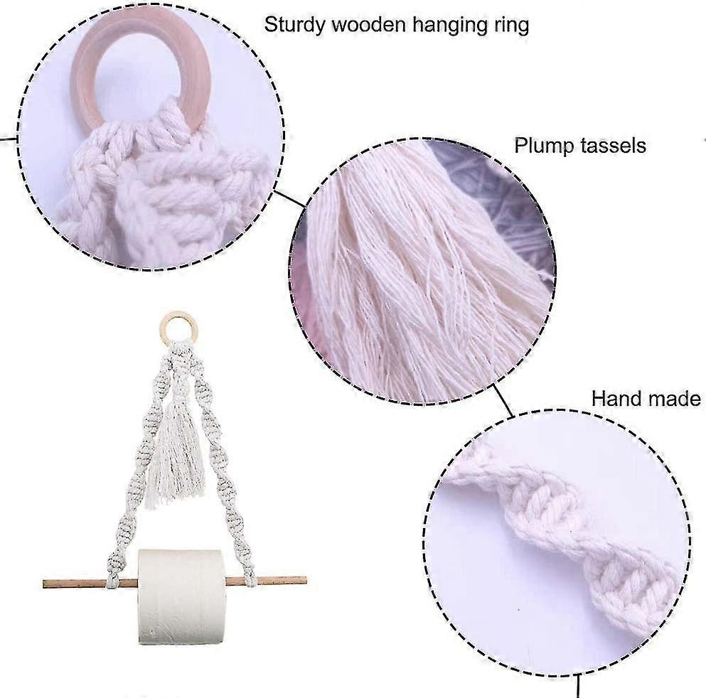 Woven Paper Towel Holder Wall Mounted Cotton Cord Sanitary Towel Holder (Beige) - DD01