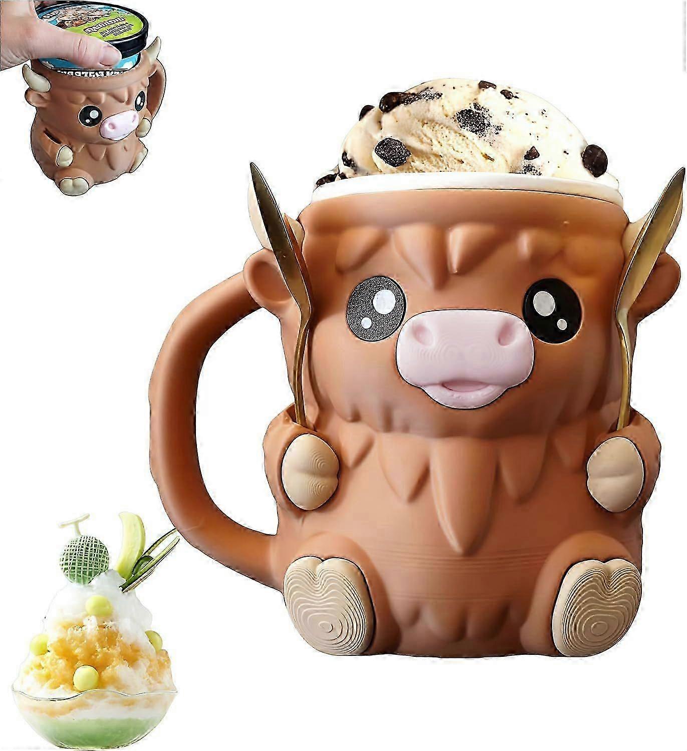 Ice Cream Pint Holder,Ice Cream Pint Sleeves Cover with Spoon & Handle,Cute Animal Ices Creams Cooler Container Leak Proof Popsicle Cozy Beer Can Cup