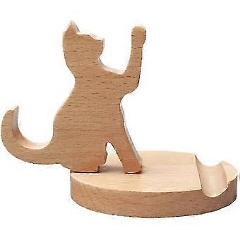 Cute Wooden Cat Phone Stand - Universal Desktop Cell Phone Holder for All Smartphones, Desk Decoration & Organizer
