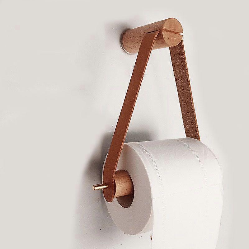 Toilet Paper Holder,Wooden Toilet Paper Holder,Wall-Mounted Retro Roll Paper Holder,Kitchen,Bathroom,Copper Handle(Brown)