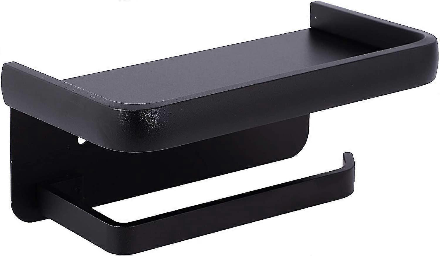 Wall Mounted Toilet Paper Holder Aluminum Roll Holder Toilet Paper Holder With Storage Shelf Black