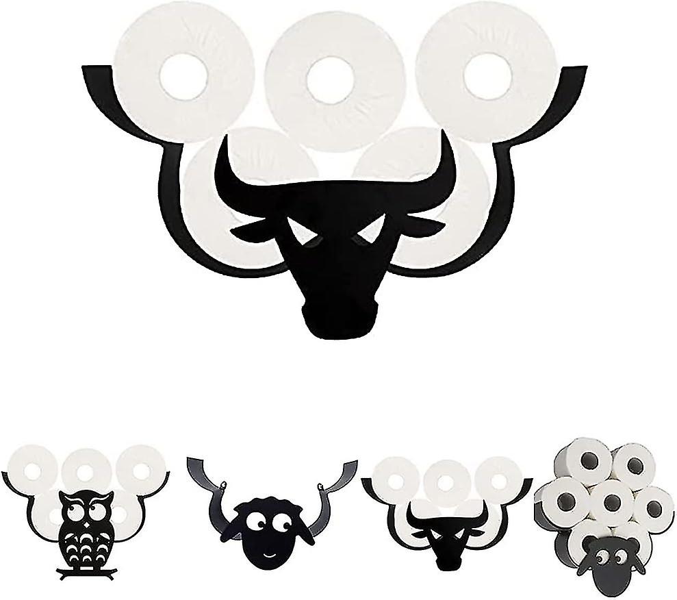 Black Metal Animal Print Toilet Paper Holder Freestanding Bedroom Kitchen Bathroom (Beef)