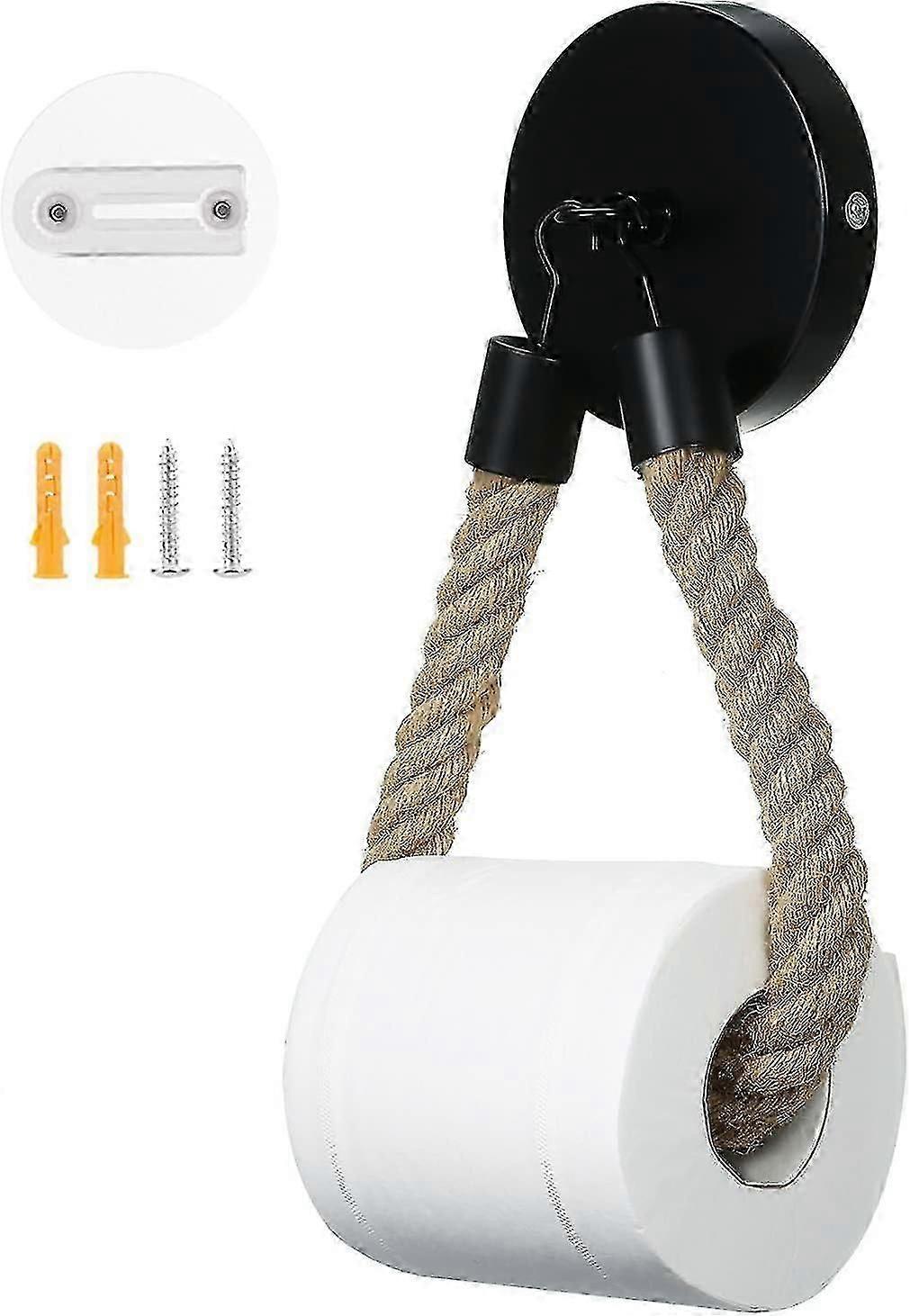 Toilet Paper Holder Without Drilling, Vintage Toilet Roll Holder, Matte Black Toilet Paper Holder for Bathroom and WC