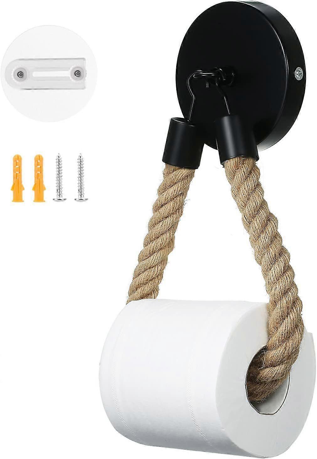 Toilet Paper Holder - Matte Black Vintage Design without Drilling