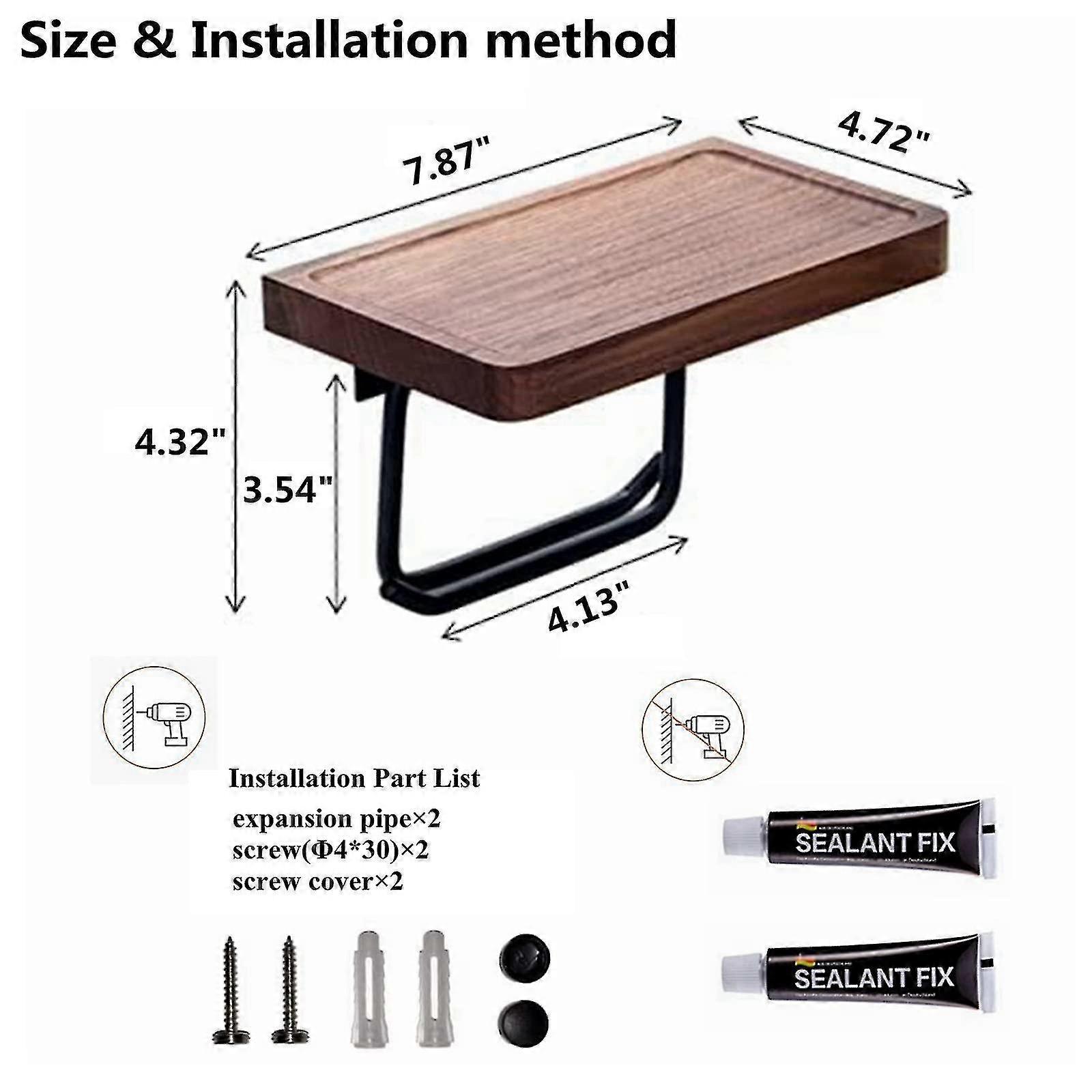 Toilet Paper Holder With Black Walnut Shelf For Bathroom,wall Mounted Toilet Paper Tissue Holder