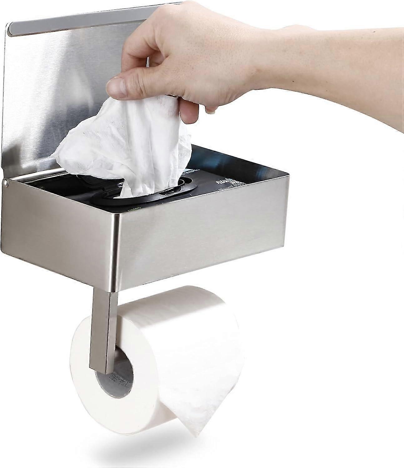 Toilet Paper Holder with Shelf, Flushable Wipes Dispenser & Storage Fits Any Bathroom, Keep Your Wet