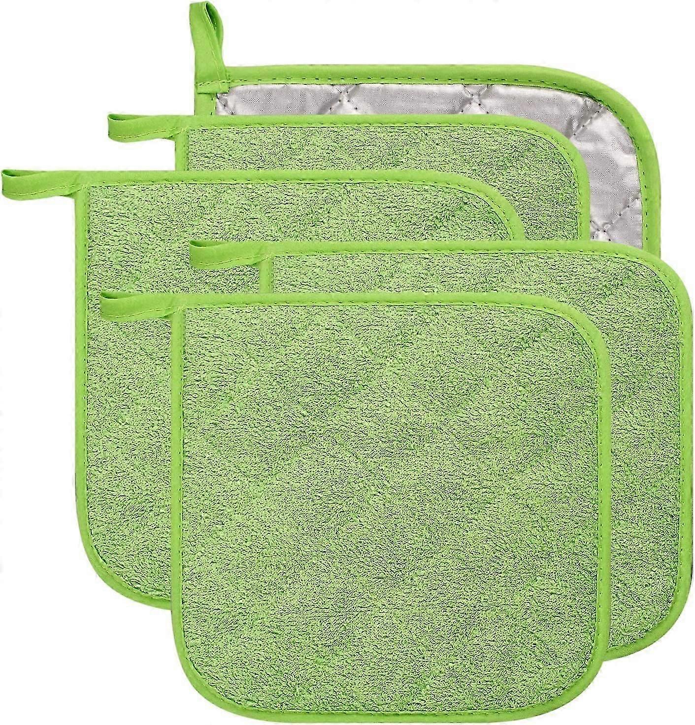 Daily Kitchen Cotton Terry Pot Holder Heat Resistant Pot Holder for Cooking and Baking Set of 5 Green Apple