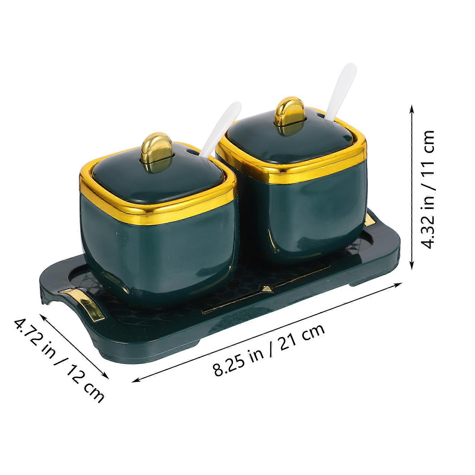 Kitchen Containers Sugar Bowls with Lid for Cooking Green Ceramic Oil Stain Resistant 1 Set