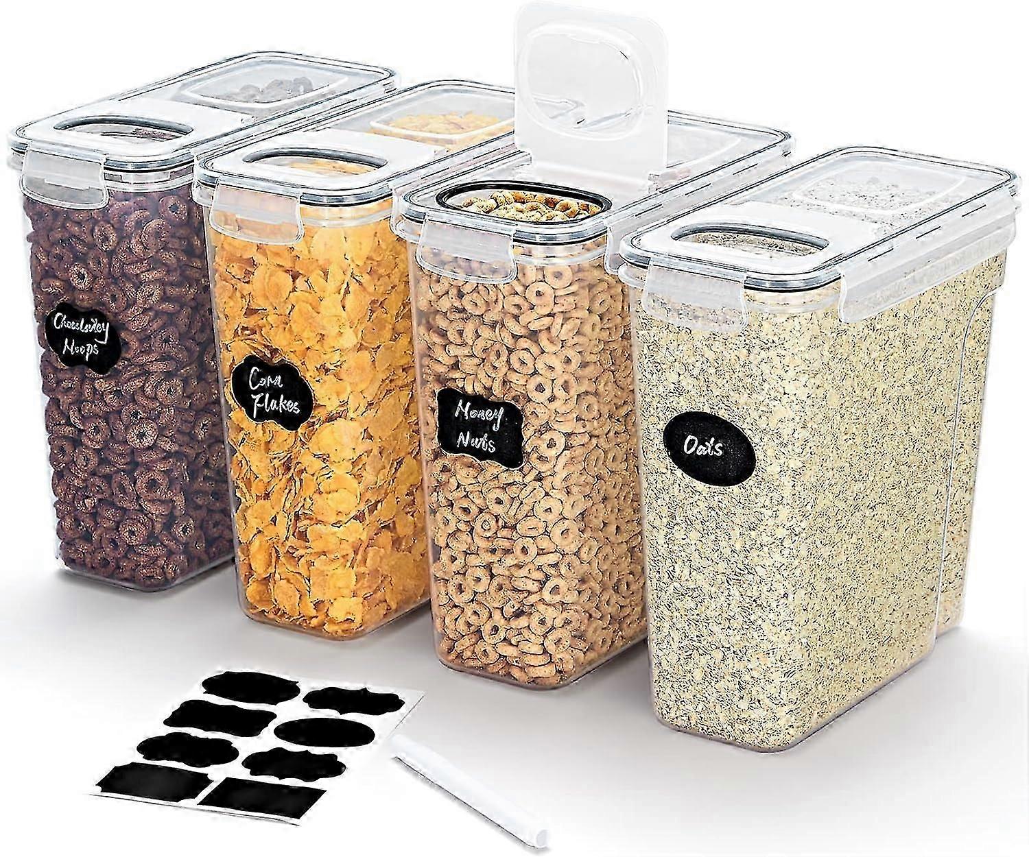 4L Cereal Storage Containers with Flip-Top Lids, Airtight Plastic Food Storage Boxes for Kitchen Pantry Organisation, Rice, Oats