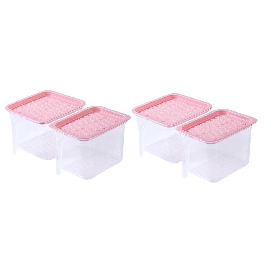 Airtight Food Containers Sealed Refrigerator Fresh-Keeping Box with Lid Pink 4Pcs