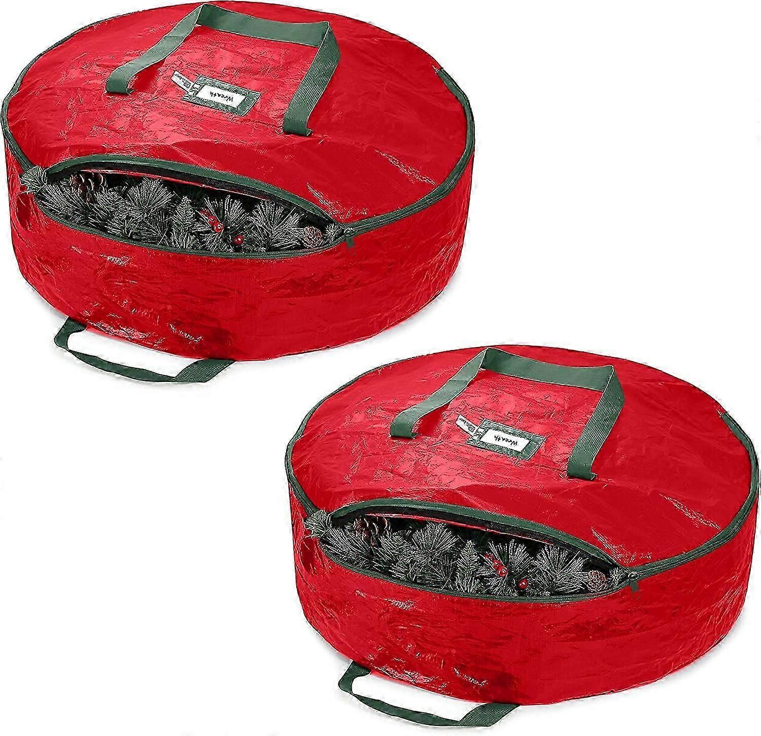 Christmas Wreath Storage Container 30" - Water Resistant Fabric Storage Dual Zippered Bag for Holiday Artificial Christmas Wreaths, 2 Stitch-Reinforce