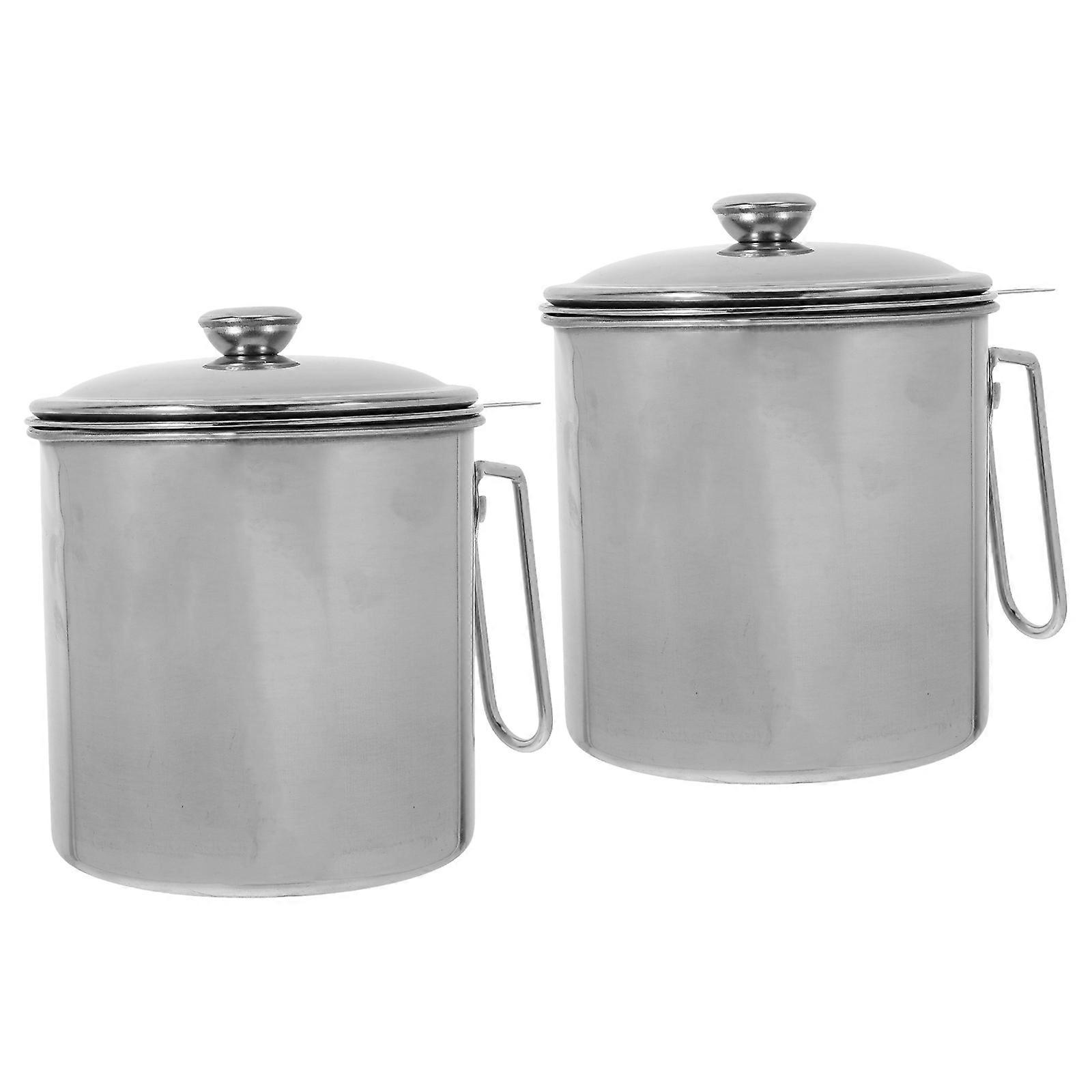 Kitchen Oil Strainer Container With Fine Mesh Strainer And Lid Perfect For Food Residue Separation 2Pcs