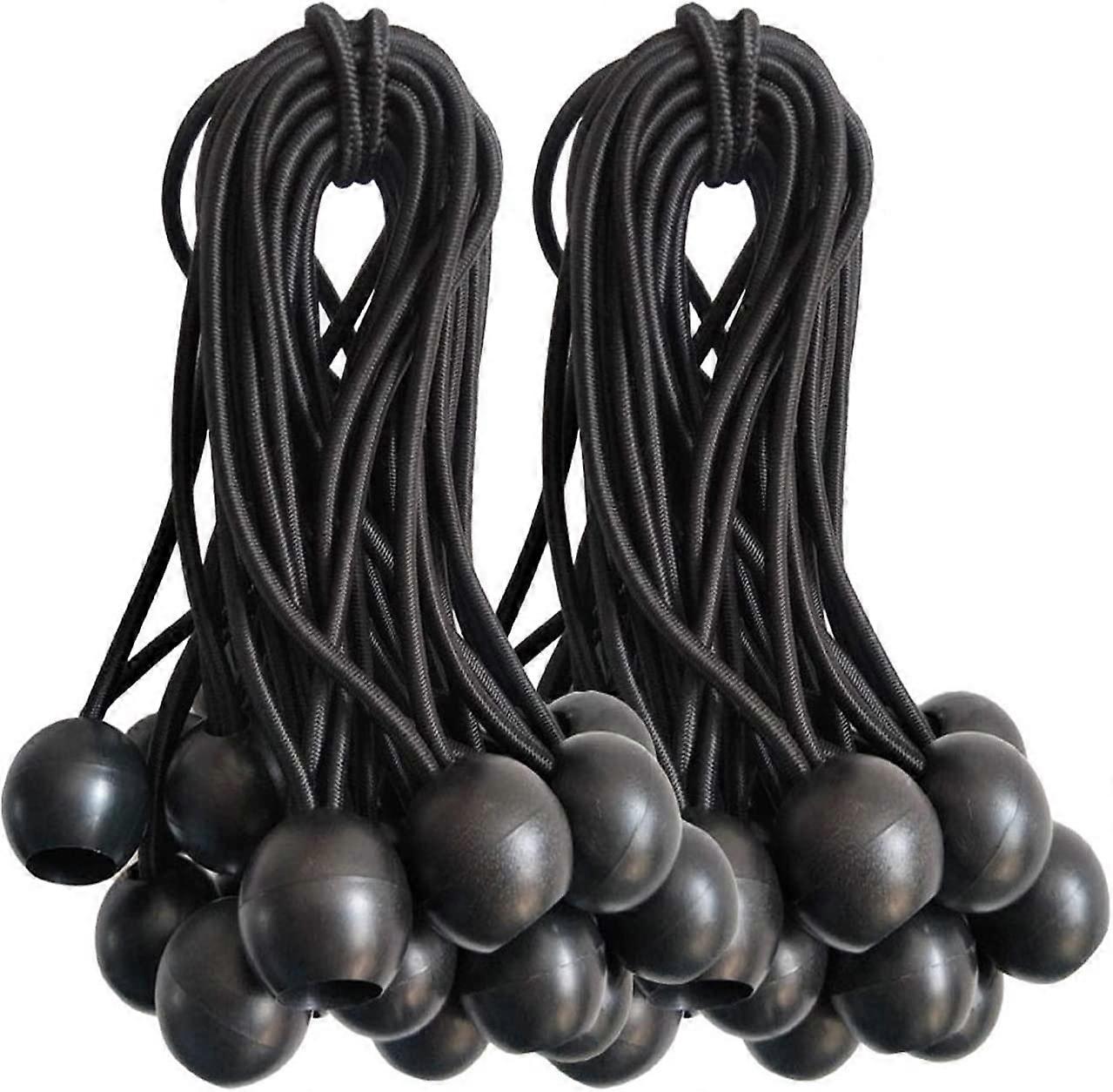 Ball Bungee Cords, 50 Packs, 6Inch Black Tie Down Cords for Tarp, Canopy Shelter, Wall Pipe, UV Resistant