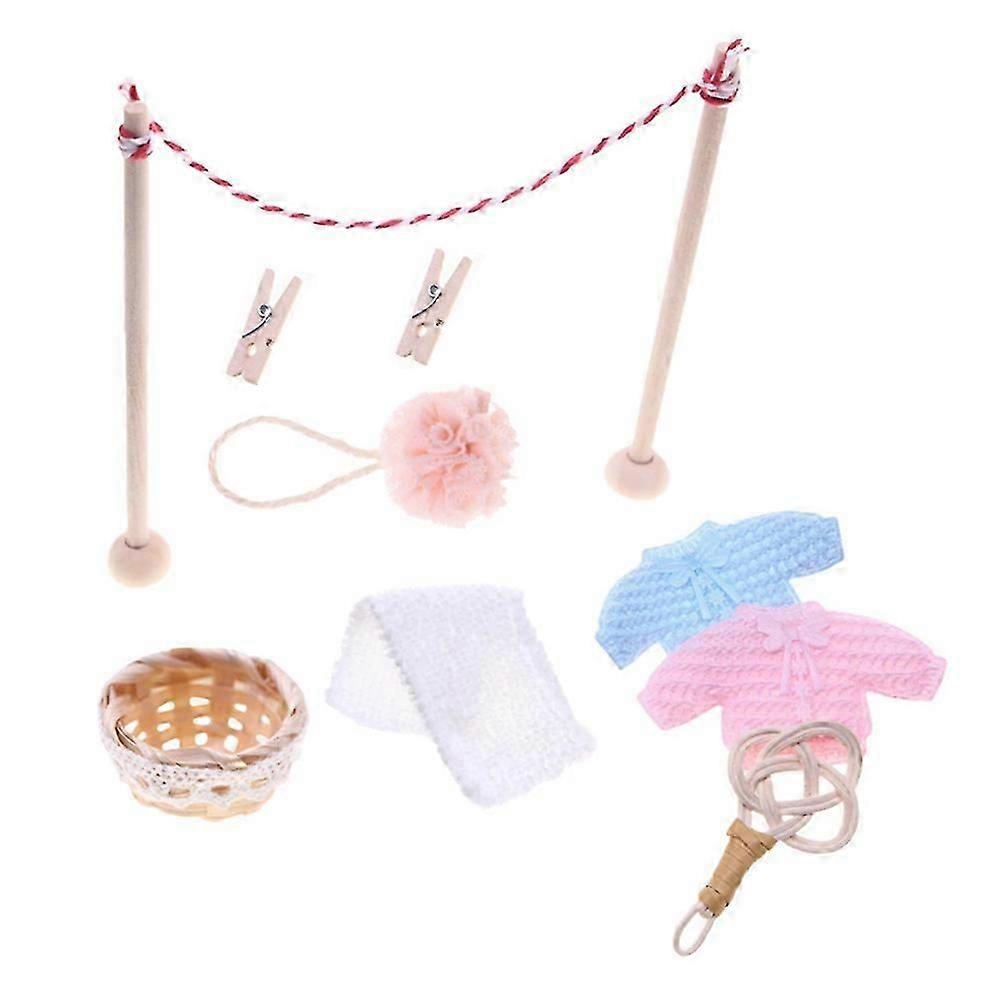 Tiny Clothesline Model Accessories For Dollhouse Decor Portable Drying Clothes For Indoor And Outdoor Scenarios 1 Set