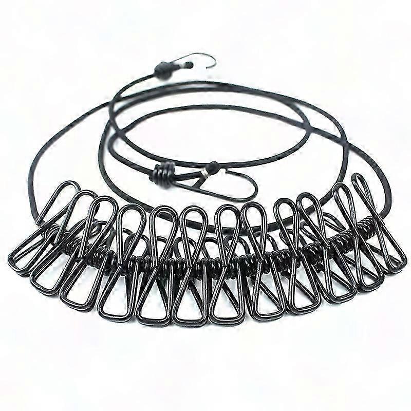 180cm Elastic Outdoor Clothesline with 12 Clips - JIKAIX Stretchy Laundry Drying Rope for Pants & Clothes