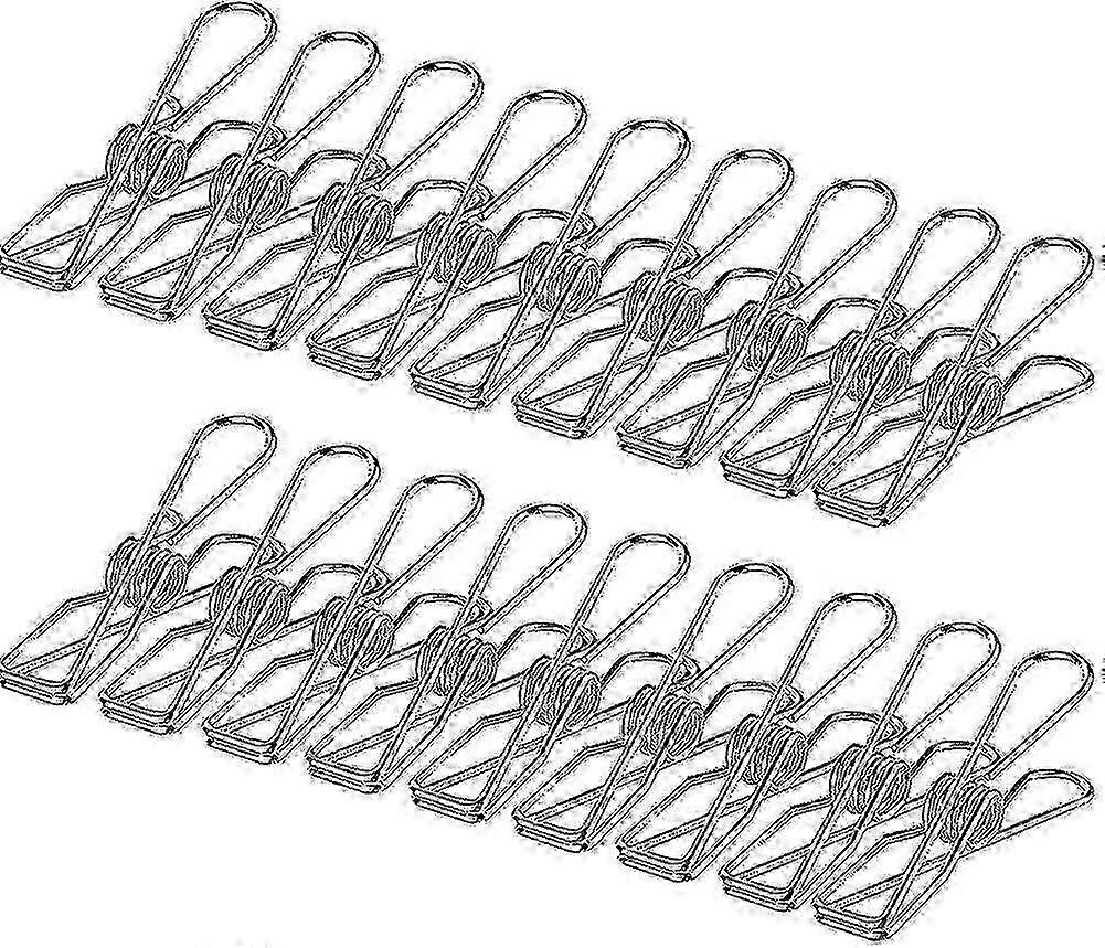 SAFE and CLEAN - Our clamp is bent from a stainless steel wire Durable, anti-rust, practical, works better than average plastic or wooden clothes peg that is easy to break, molding STRONNG GRIP - Clothes Pegs are strong, powerful enough to holding even wet jeans and easy to work with on baby clothes too MULTI-PURPOSE - Great use for small objects in daily life and office Such as socks drying, clothes line, bag sealing, food seal, and paper files clips CLIP INFORMATION - 15mm caliber of clip ( Max clip thickness), 60mm length, 12mm width, 6mm hole diameter The pass-through diameter of the spring is a good size and therefore you can feed the clothesline through this hole COMPACT STORAGE - Small and exquisite, beautiful appearance You can get a lot of clothes pins in a small container for compact storage Great suitable for travelling, business trip, picnic, camping