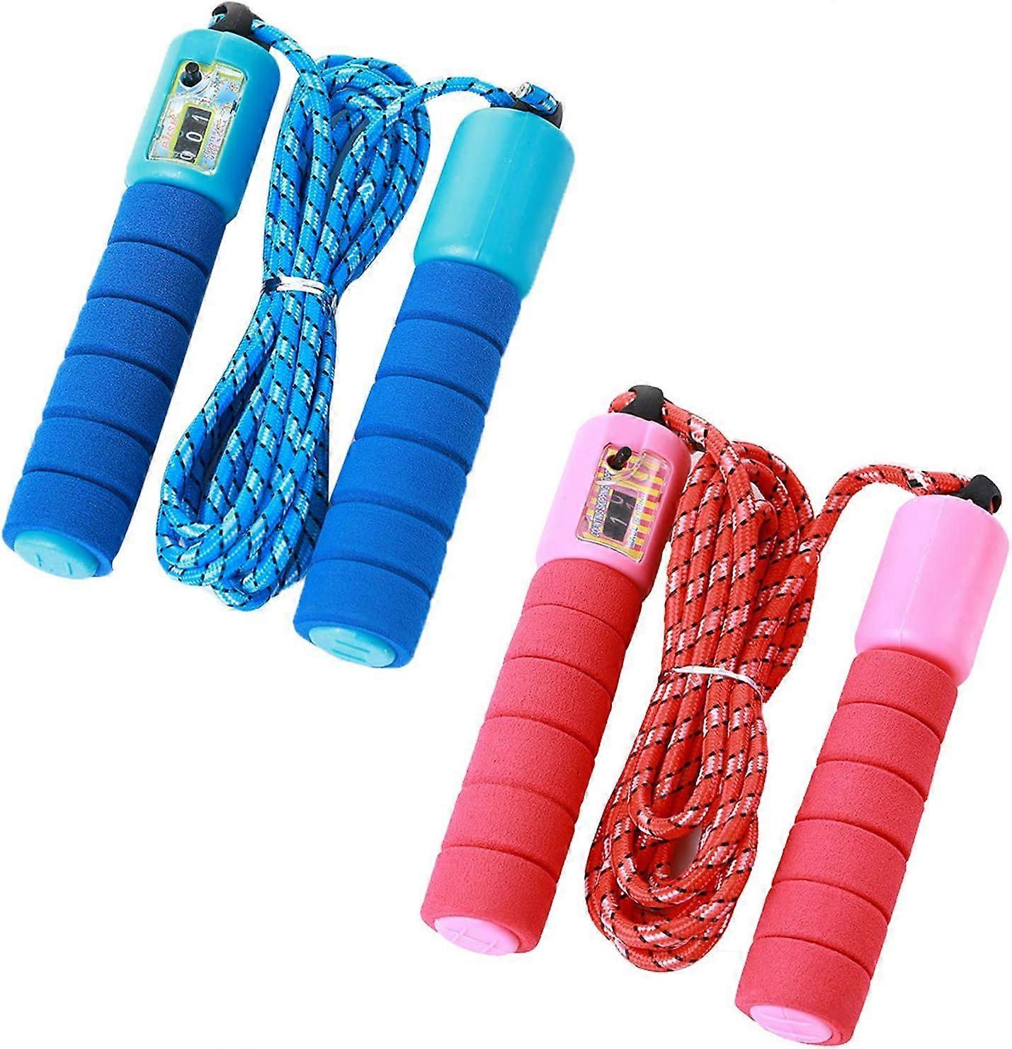Kids' Jump Rope - 2-Piece Skipping Rope with Counter and Comfortable Handle (Blue and Red)