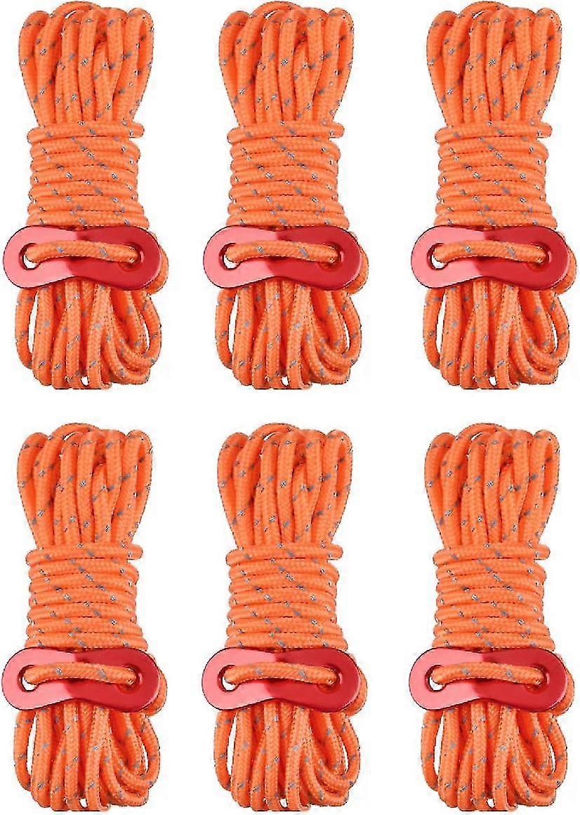 4m reflective tent rope, 4mm diameter nylon rope with 6pcs tensioner for camping hiking awning