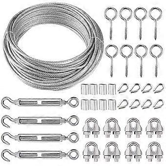 حبل سلكي 20 م 3 مم ، مجموعة حبل أسلاك الفولاذ المقاوم للصدأ 20 م ، تعريشة كابل فولاذي بقطر 3 مم مطلي ، كابل فولاذي مع ثقوب ، حبل مشبك M5