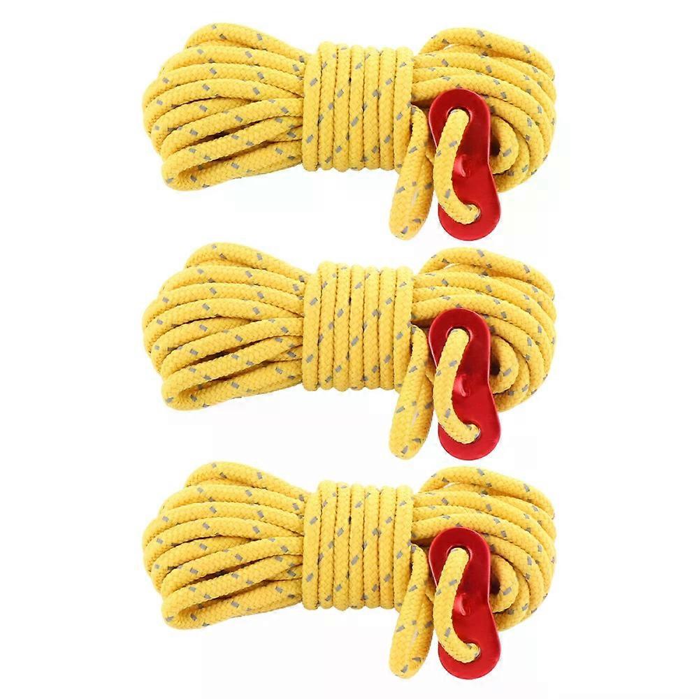 Reflective Rope, 3pcs Outdoor Camping Tent Rope with Reflective Design for Tent Accessories (Yellow)