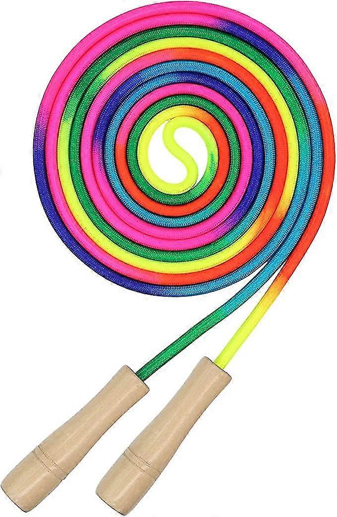 280cm Long Jump Rope For Kids, Double Dutch Skipping Rope With Wooden Handle, Rainbow Jumping Rope
