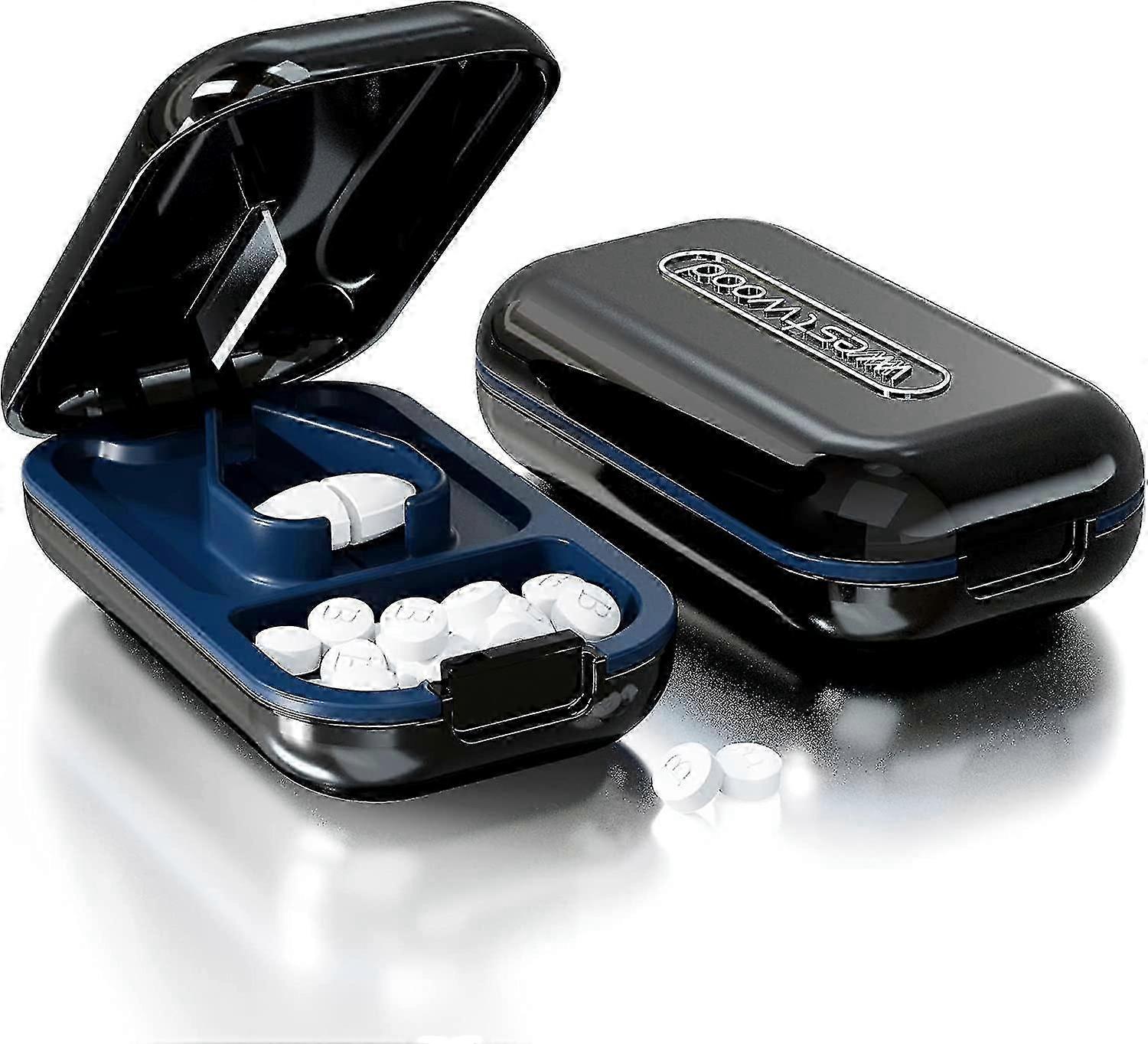 Pill Cutter, Splitter With Dispenser For Small Or Large Pills,stainless Steel Blade, Travel Sized For Purse Pocket