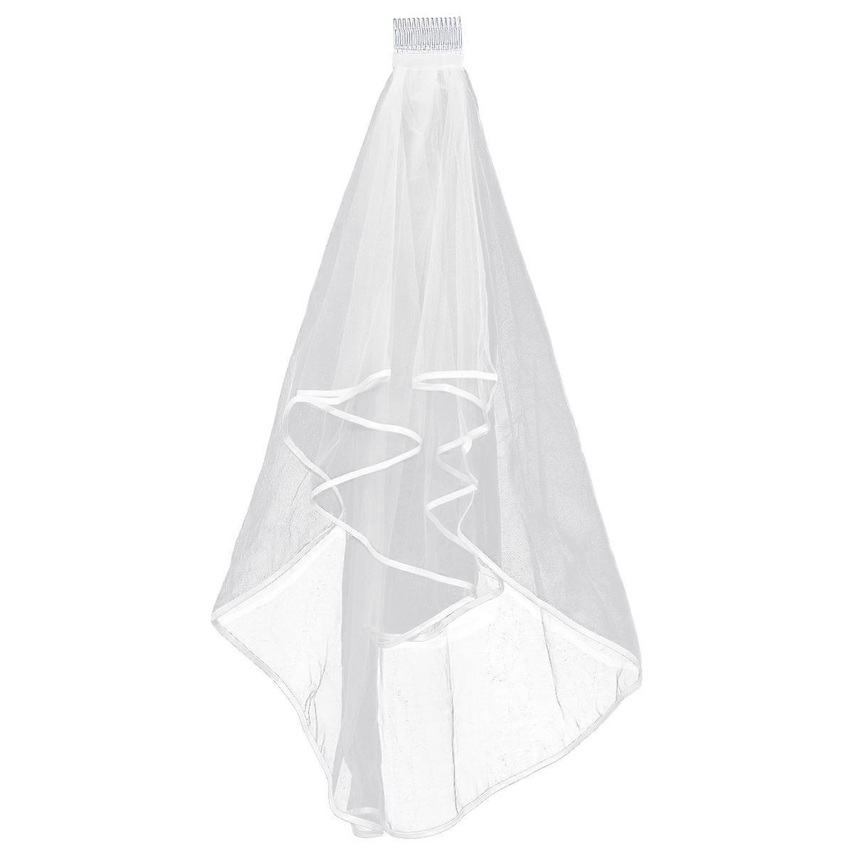 Bridal Wedding Veil Simple Design With Lace And Comb For Brides In White 60CM Hair Attachment 1Pack