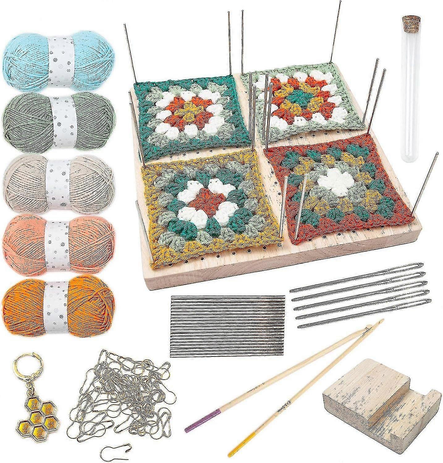 Crochet Blocking, Square Wooden Blocking Board Mat, Crochet Supplies And Accessories, Full Kit With Crochet Hook For Diy Crafts And Beginners - NNIU