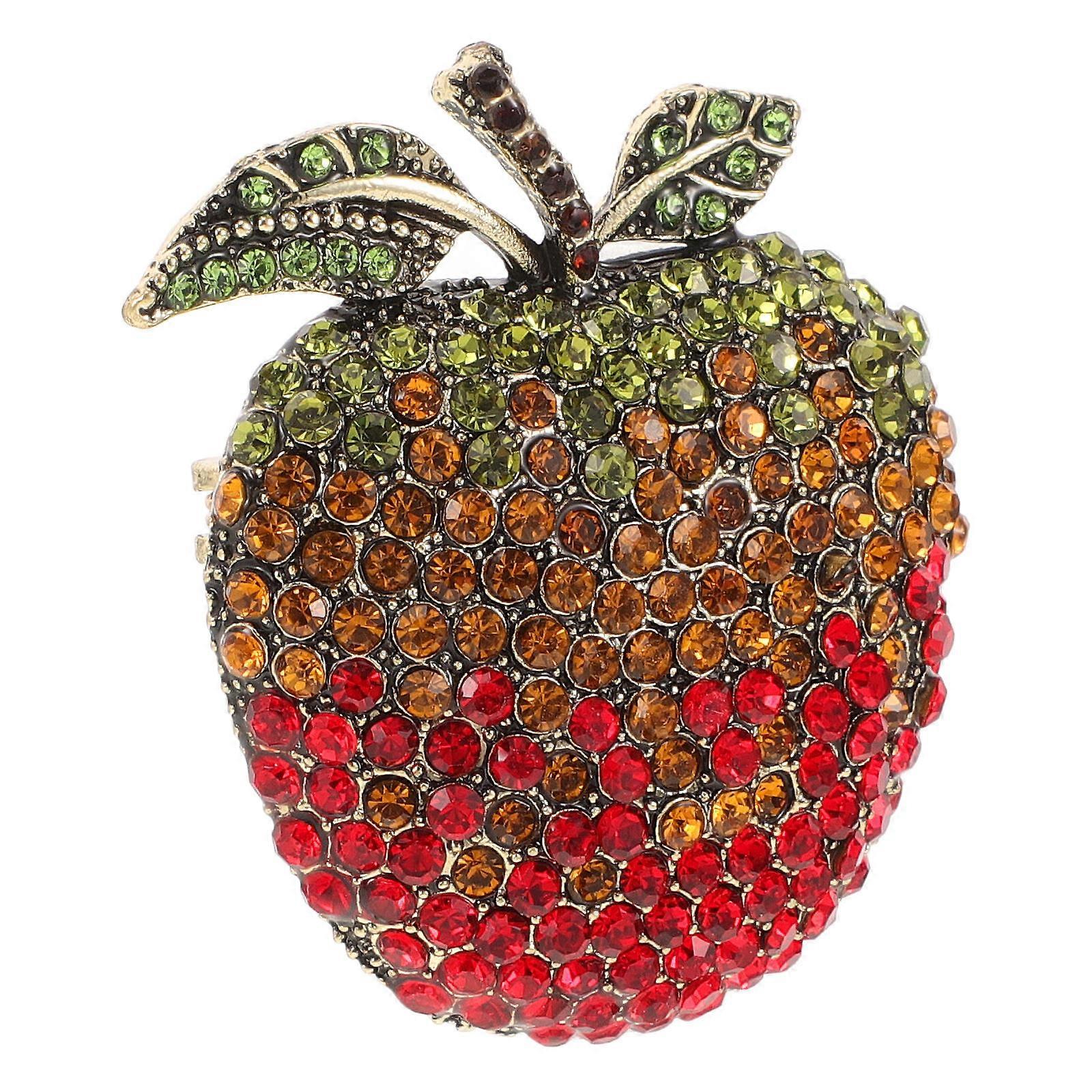 Rhinestone Red Apple Brooch Pin for Women Vintage Artistic Design Cute Costume Accessory for Jackets Dresses Elegant Fashion Jewelry Inlay