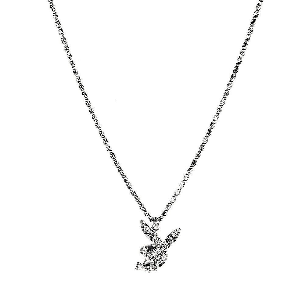 Rhinestone Playboy Rabbit Pendant Necklace Stainless Steel Retro Punk Necklace Women's
