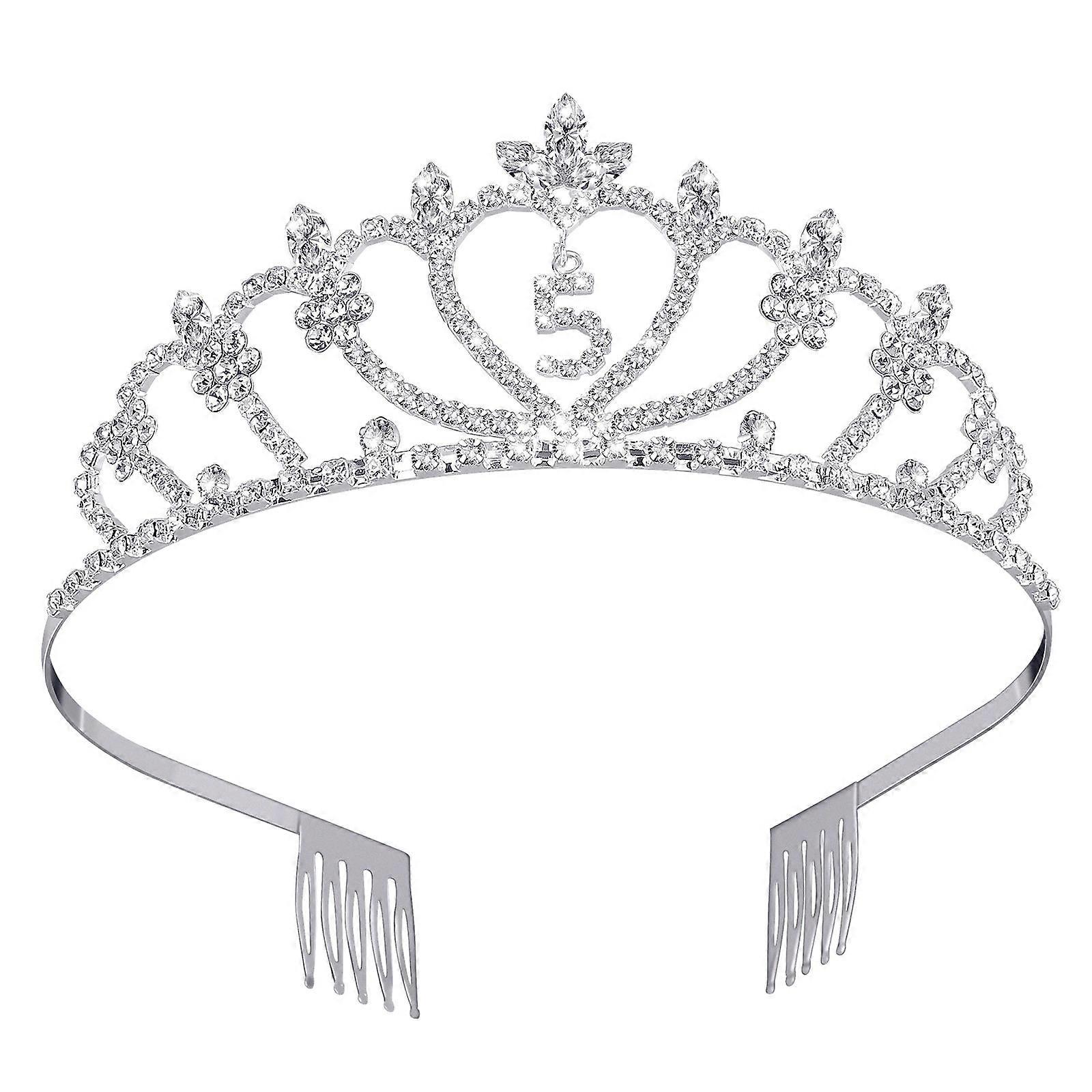 Rhinestone Birthday Crown for Girls Decorative Tiara Headband Silver Color Size Fits