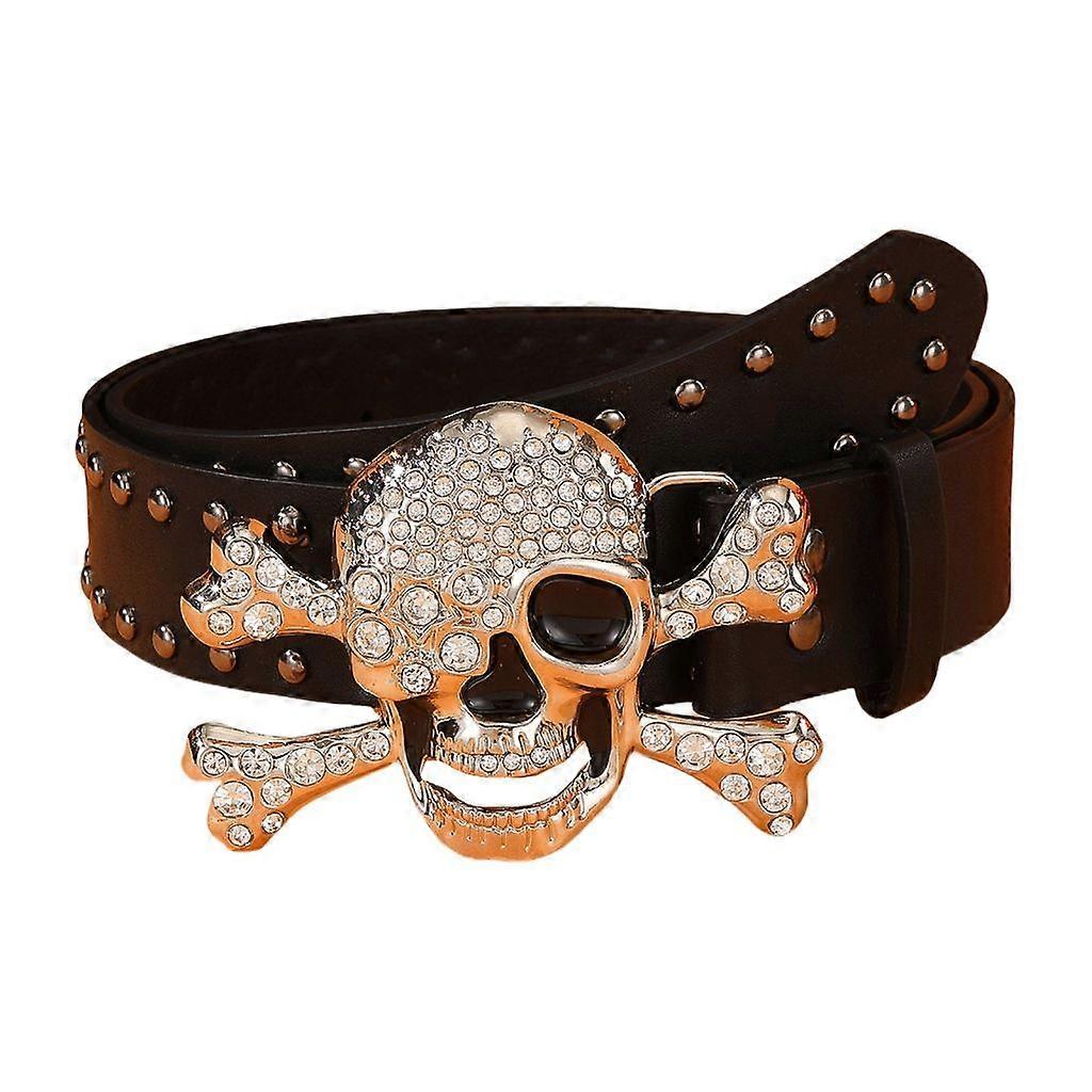 Rhinestones Skull Belt with Rivet Studded Cool Adult Unisex Waistbelt for Pants