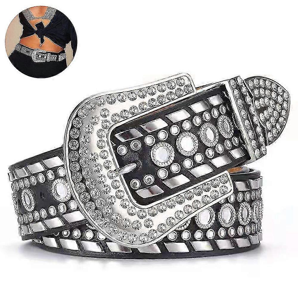 Rhinestone Belt Cowgirl Bling Studded Leather Belt For Jeans Pants