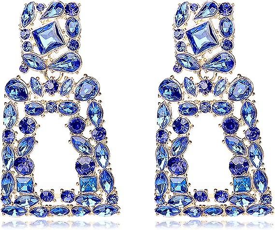 Rhinestone Rectangle Dangle Earrings For Women Sparkly Crystal Geometric Drop Statement Earrings