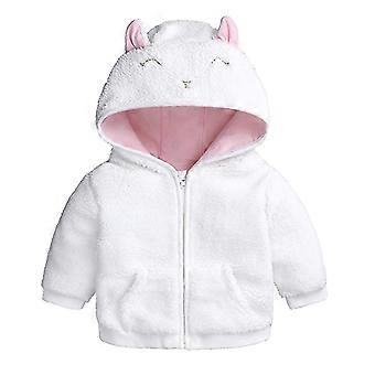 Newborn Baby Girl Autumn Winter Fleece Jacket With Hood Zip Hooded Coat Cape 9-12 Months(white)