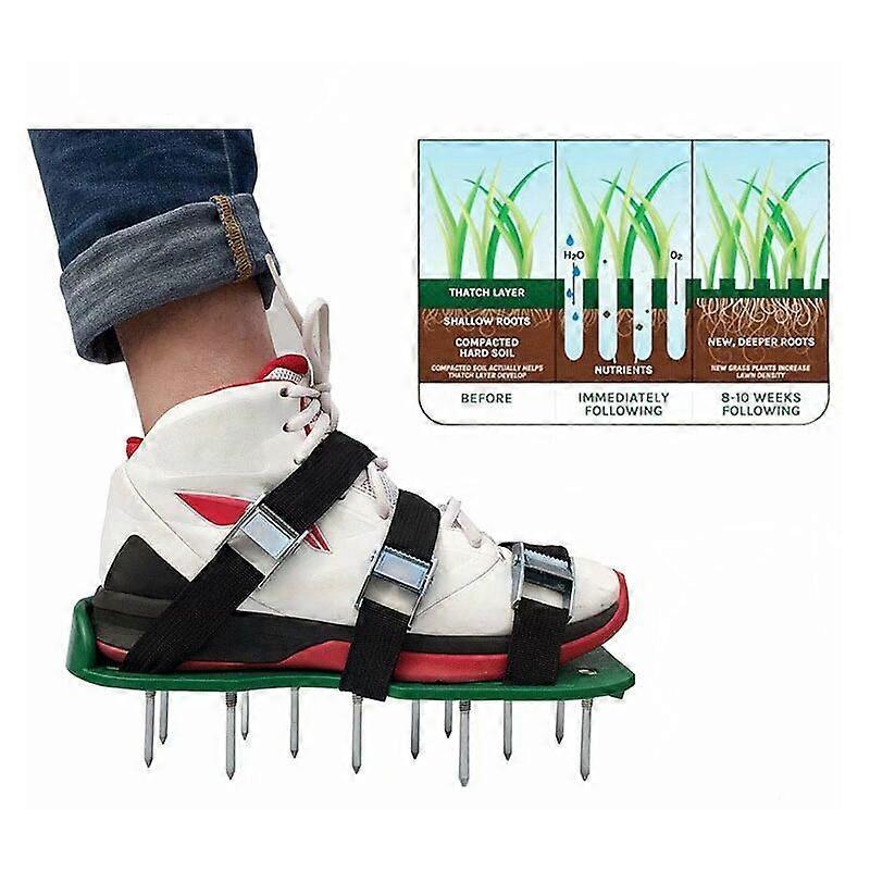 Garden Lawn Aerator Shoes Sandal Spike Ventilation Pair of Grass Green Tool, Black 30 X 13CM