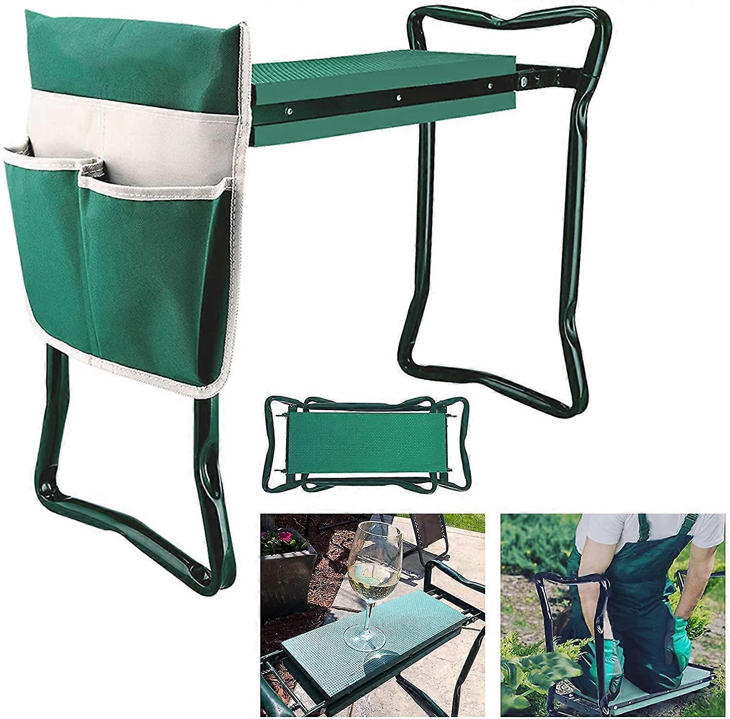 Garden Kneeler and Seat Foldable Gardening Bench Stool with Tool Bag Pouch EVA Foam Pad Outdoor Practical Garden Tools for Kneeling and Sitting Sturdy