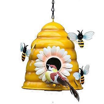 Garden Bird House, Metal Bird House Bee Shaped Hanging Feeding Bird Nest Warm Nesting Box Outdoor